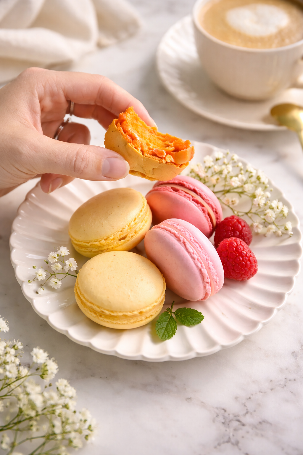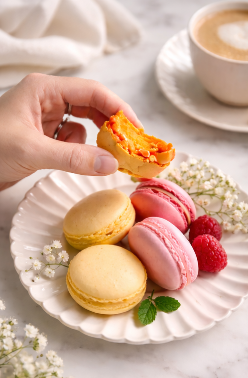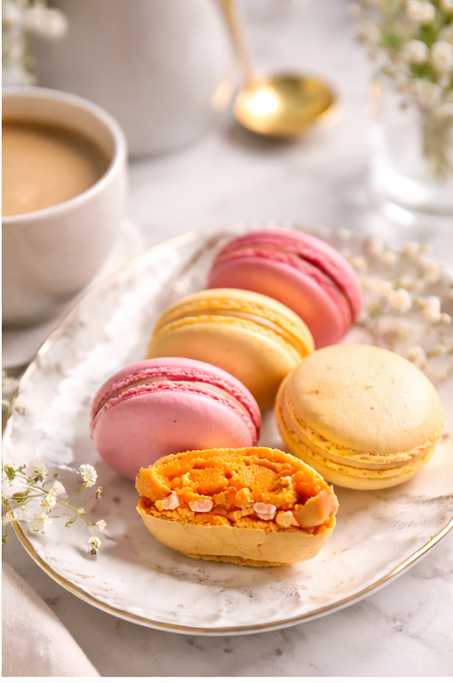 Kleurrijke luxe macarons met verfijnde smaken. Perfect als cadeau of om zelf van te genieten.